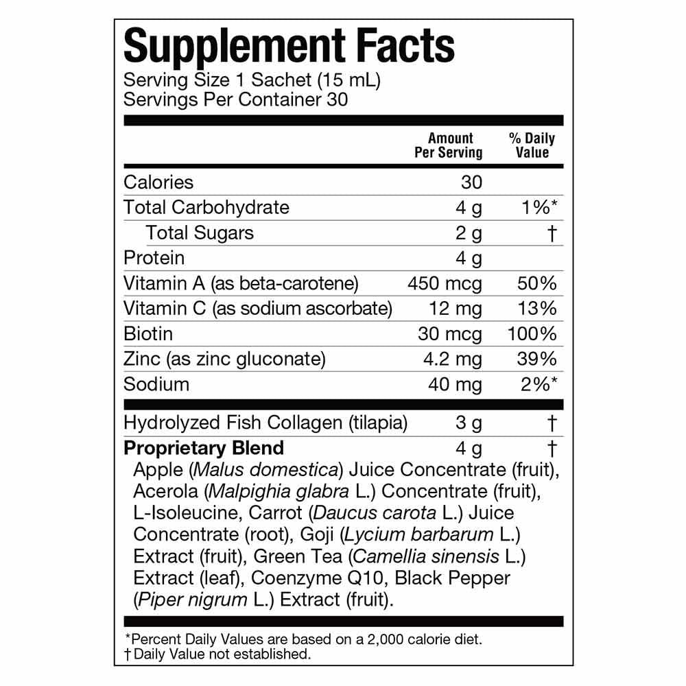 In addition to marine-based collagen, we also added black pepper extract for a powerful antioxidant along with vitamin C, goji berries and green tea extract to help protect your skin and fight free radicals. Forever Marine Collagen delivers zinc to play a role in promoting healthy skin, hair and nails.